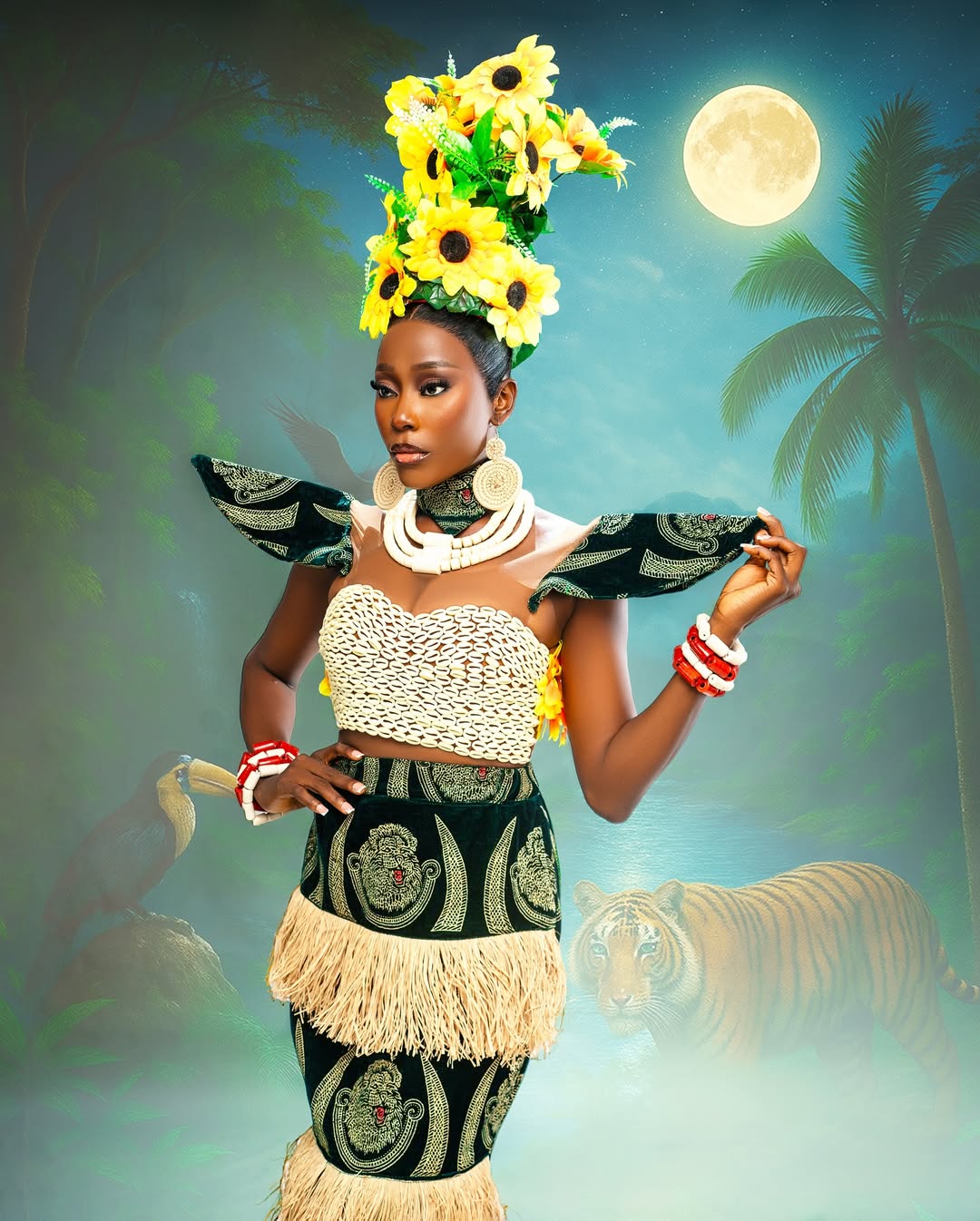 Designed by the visionary Osemwengie Odion and brought to life with Faith’s creative artistry, the costume is a stunning homage to nature and heritage.