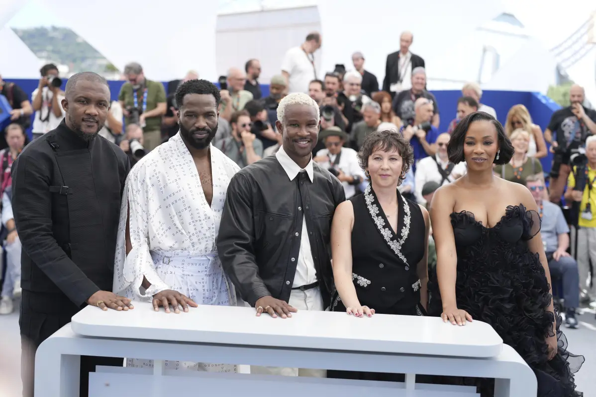 Director Akinola Davies Jr. and cast members Sope Dirisu and Wale Davies poses during a photocall for the film "My Father's Shadow" in competition for the category Un Certain Regard at the 78th Cannes Film Festival in Cannes, France, May 18, 2025. REUTERS/Sarah Meyssonnier